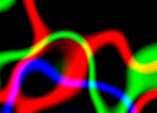 三原色是红色,蓝色和绿色。复色是指两种以上的颜色相融后形成的颜色,在分离、裂变和雕琢光色的作品中,颜色与颜色的相融都会依照自然界光变的规律形成其它的复色。七色光都是复色的体现。 下图是光被分离出来的三原色。