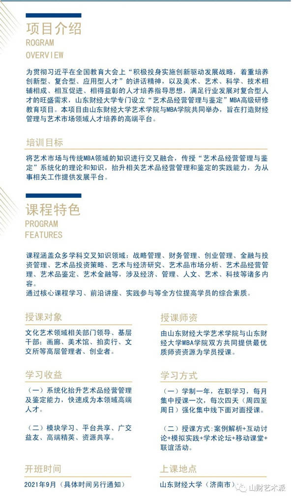 山东财经大学“艺术品经营管理与鉴定”工商管理硕士高级研修项目招生简章