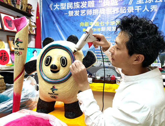 在2022年冬季奥林匹克运动会开幕式百日倒计时之际,北京冬奥会、冬残奥会筹办工作也迎来了最后冲刺阶段。为更好地展现“双奥之城”魅力,讲好中国新时代故事,2021年10月24日,中国发雕艺术家黄鑫先生带领他的学员开始创作冬奥会“火炬、吉祥物冰墩墩”发雕艺术作品献礼,激发中国民众对奥林匹克运动的热情,通过匠人艺术方式预祝“双奥”举办成功。