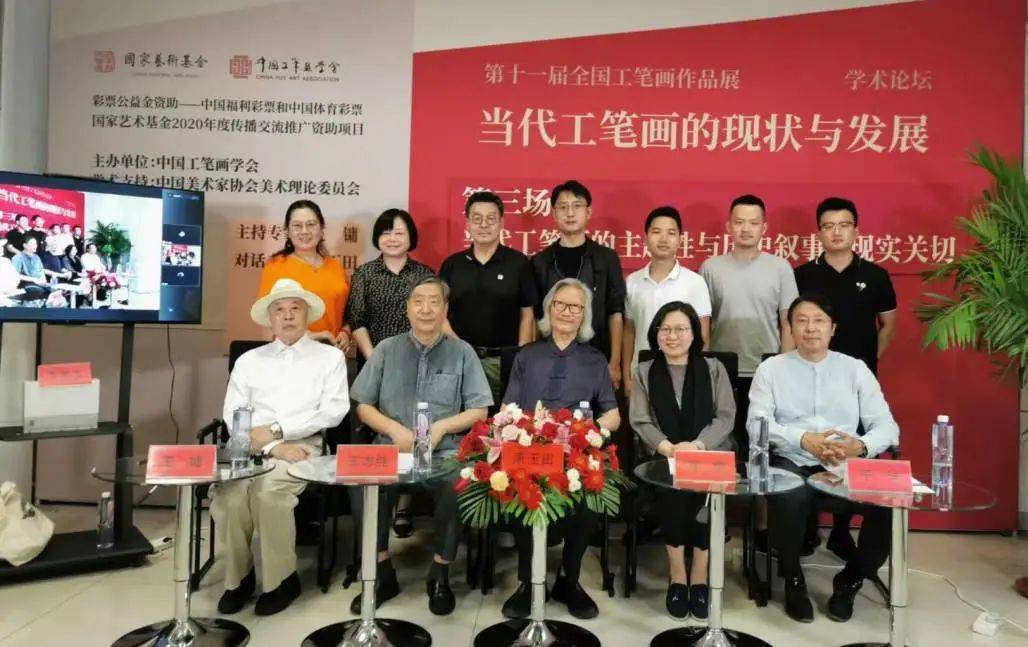 2022年8月17日下午,由中国工笔画学会主办、中国美术家协会美术理论委员会学术支持的,国家艺术基金资助项目“第十一届全国工笔画作品展”系列论坛“当代工笔画的现状与发展”第三场“当代工笔画的主题性与历史叙事、现实关切”,在中国工笔画学会成功举行。六位嘉宾结合“第十一届全国工笔画作品展”,就“主题性工笔画如何发挥画种的特性,工笔历史画如何利用历史叙事资源,现实题材工笔画如何表现现实关切”等大家关注的话题展开精彩对话。论坛合作的雅昌艺术头条直播吸引了近120万观众在线观看直播和回放。