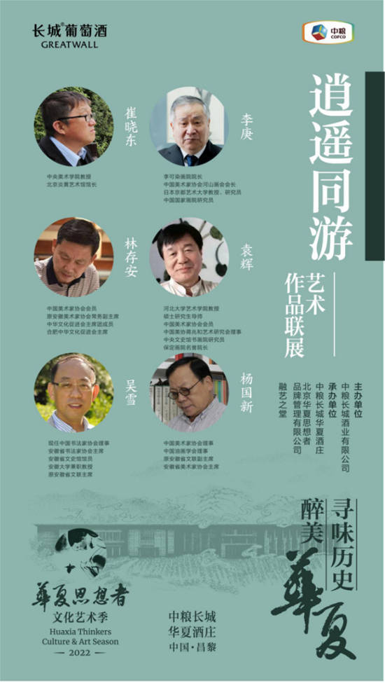 在长城华夏酒庄这个馥郁芬芳之地,在文化赋能产业这个集中追溯之地,六人联展的集中呈现,似乎又向我们昭示了一些更富文化内涵、更具人文情怀的文化力量对艺术创作的浸润影响,山水画那些可以澄怀观道的空间构成,人物画那些直抵人心的形象塑造,书法艺术那些充盈着气韵生动的线条流转,似乎都在笔墨纵横之间,晕染上了长城华夏酒庄对文化、对历史、对艺术、对生态、对自然、对产业的尊重与厚待之姿。