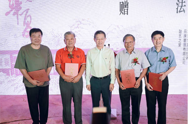 中粮酒业董事长王浩为本次书法捐赠展艺术家颁发作品收藏证书
