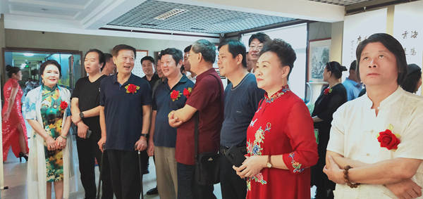 书画展开幕式由全国金话筒提名奖、淄博市女子书画协会主席宋文静主持。 淄博市人大原第一副主任、淄博市老年书画协会首席指导刘池水,民建淄博市委会副主委、二级调研员林治国,淄博市文联党组副书记、副主席吕德民,中共张店区委常委、统战部宣传部部长刘静,淄博市团市委党组成员、青少年宫主任韩其东,淄博市非公有制经济组织党委副书记高峻,张店区文联副主席宋永照,淄博美协名誉主席王立华,山东省书协主席团委员、山东省青年书协主席邹方臣,淄博市书协副主席张伯祥,淄博市青年美协主席杨忠奎,淄博市青年美协名誉主席范磊,华夏孝文化研究会会长翟焕远,韩国国际青少年文化学术交流协会副会长周永刚,韩国大丘医疗观光产业咨询委员张世焕,中华民族传统文化促进会主任张林东,中国民间收藏研究会常务副会长兼山东分会会长姜蓓等领导出席活动,及艺术家代表与驻淄企业商会代表二百余人应邀参加了活动。