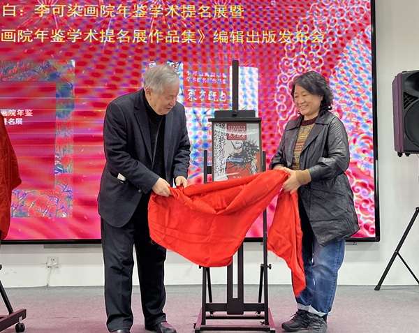 李庚院长、陈高潮社长、西沐副院长、赵春彩董事长为《李可染画院年鉴(2021)》《李可染画院院刊(2022)》首发式揭幕