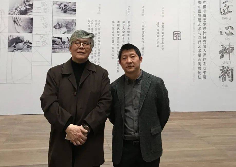 张錩先生和陈辉在清华美院美术馆“匠心神韵-中国非遗艺术设计研究院大师作品双年展”