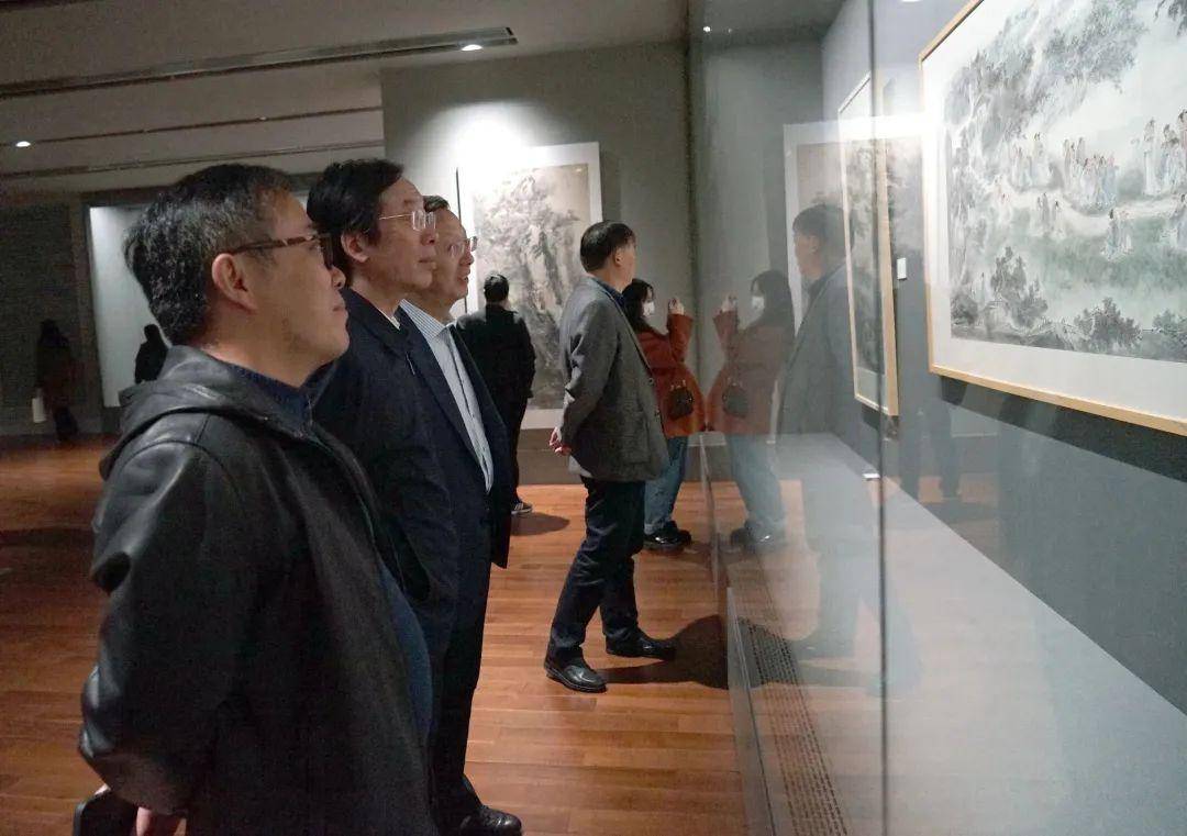 南京大学商学院名誉院长、行知书院院长、博士生导师赵曙明,南京大学法学院教授、博士生导师、中国商法学研究会副会长范健,江苏第二师范学院原党委副书记、副院长程建军,著名华人作家、《伤痕》作者卢新华,无锡巿委原副秘书长王安岭,绍兴市柯桥区人大副主任胡国炜,南通市人大常委会原党组成员、南通市江海文化研究会会长周剑浩,中共南通市委组织部副部长、市公务员局局长吴陈钢,江苏工程职业技术学院党委书记秦志林,南通市人大常委会专职委员、南通市税务局督办佘元原,南通书法国画研究院名誉院长、南通市美术家协会名誉主席侯德剑,南通工贸技师学院党委书记、院长张建锋,上海崇吉企业管理有限公司董事长徐长江等领导嘉宾共同参加活动并观展,本次展览展期至4月20日。