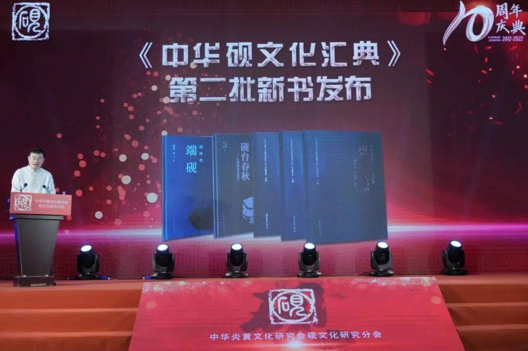 现场进行了《中华砚文化汇典》编撰出版展示。据介绍,《中华砚文化汇典》共分八个分卷,共计26册,自2012年7月启动,2021年7月进行了首批11本新书发布,第九、十届全国人大副委员长许嘉璐评价:不啻(chi)为我国首部砚台文化“百科全书”。