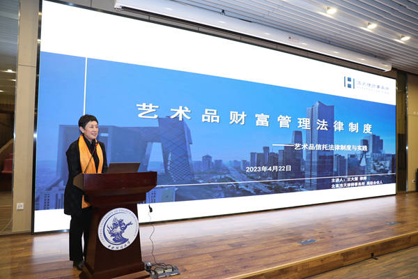 中国拍卖行业协会副秘书长、新闻发言人、拍卖师分会秘书长,《中国拍卖》杂志社社长欧树英作《从瑕疵“不担保”走向有条件承担责任》主题演讲。浩天律师事务所高级合伙人、浩律财富负责人,中国人民大学法学院校外硕士生导师云大慧作《艺术品财富管理法律制度之艺术品信托法律制度与实践》主题演讲。