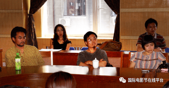 万玛才旦(左一)参加北京电影学院2004届毕业联合作业研讨会