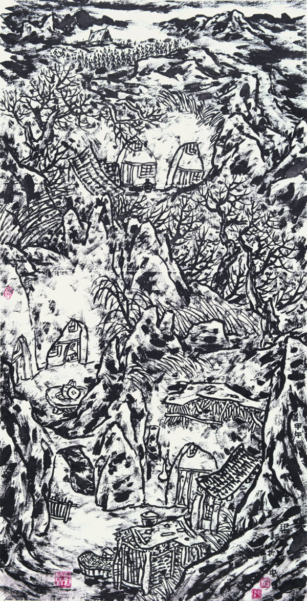 梁耘作品《故土》68cm×138cm,纸本水墨,2016年