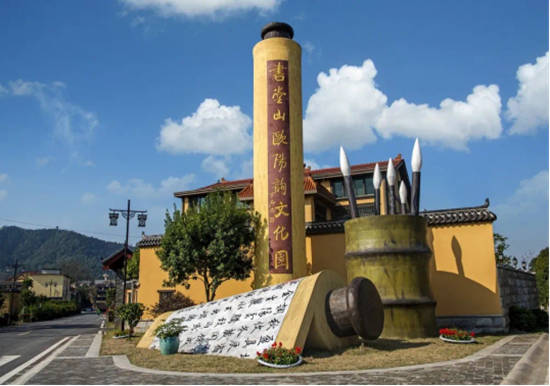 书画世界,有湖光潋滟,有长江万顷,更有腾飞之龙。书堂山水有灵气,‘楷圣’家学渊源深。据地方志记载,欧阳询及其四子欧阳通曾僻居长沙城北的笔架山,也就是现在的书堂山,日以临池为课,夜以读书为乐,从公元301年欧阳世族迁居书堂山,到欧阳询的爷爷欧阳頠建镇南将军府,再到欧阳询父子在此研墨习字,一扎根就是300余年。其间,从欧阳询的祖上欧阳生算起,连续8代都出了当朝博士,欧阳家族已是闻名全国的书香世家。