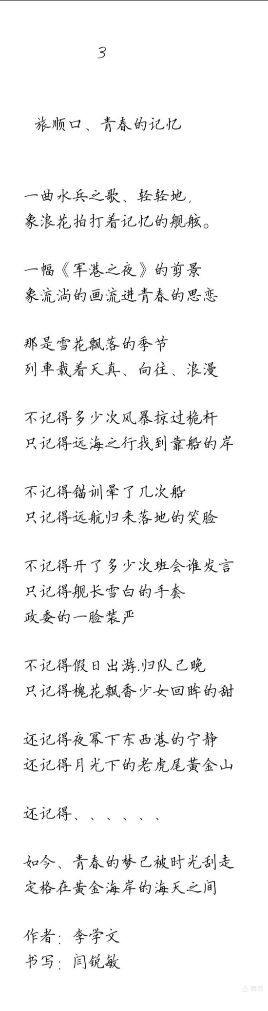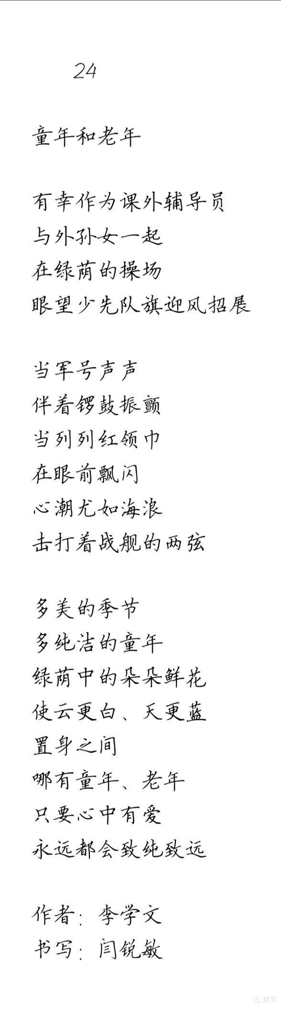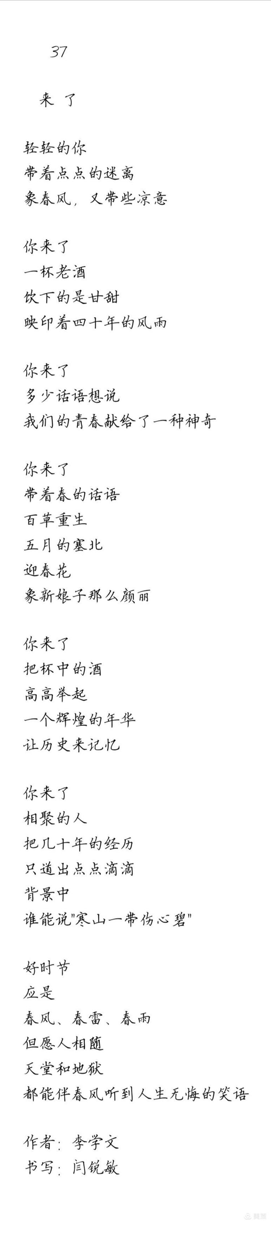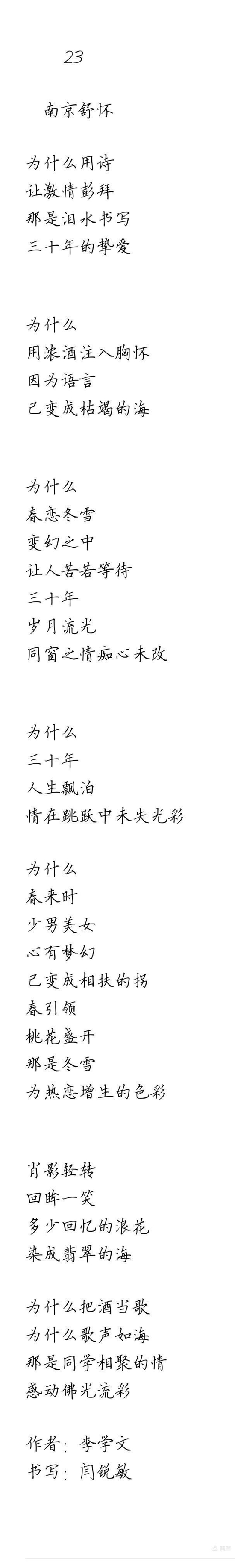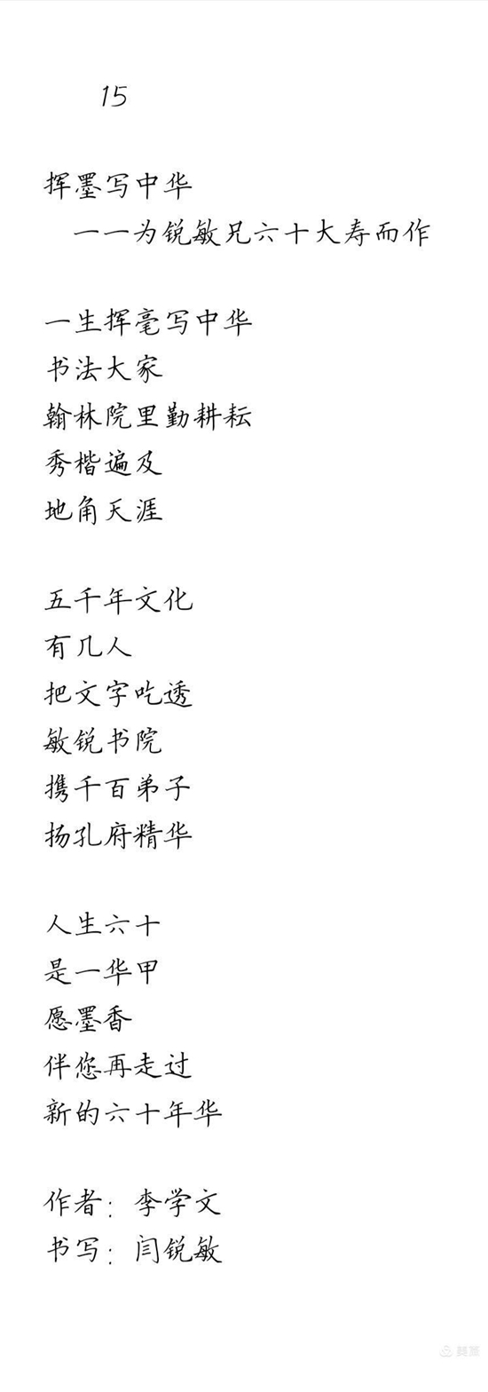 作者:李学文 书写:闫锐敏 硬笔楷书书写人闫锐敏(左)和本文作者李学文。 他们两个是三十多年前,在北京中国工运学院时,同窗两载的同班同学。...