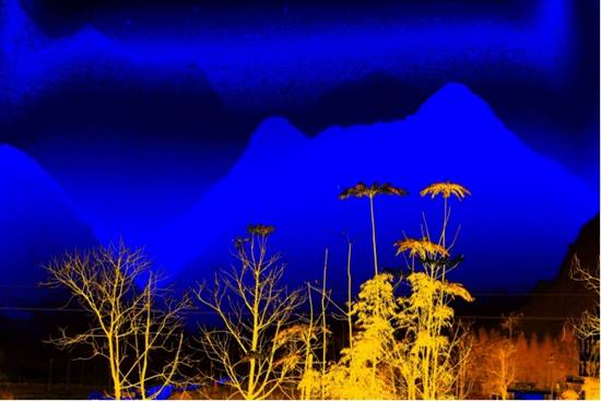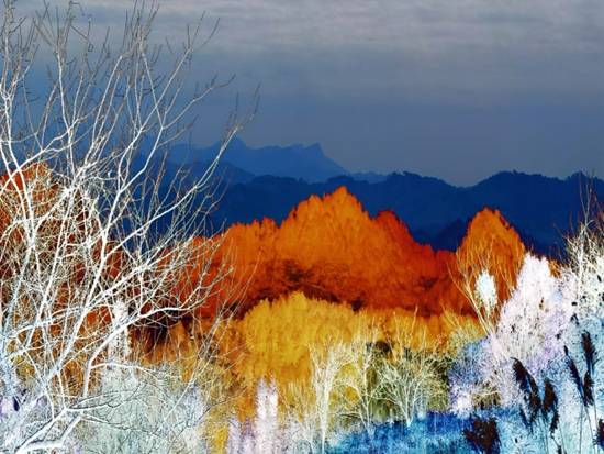 太阳把光反射到地球上时,光已经穿过了数不清空间的物质。光在空间与同一种物质碰撞时,因物质所处的空间位置不同会产生不同的光效,在与不同的物质碰撞时也会产生不同的光效。也正是如此,我才能够从任何一张照片中分离出不同的光色,并且还能够从这张照片中裂变出数不清的色彩所形成的结构图案。这就意味着,人们可以从空间的信息中分离出不同的色彩,可以从光图中裂变出不同色彩所构成的图案。从空间取出光效形成的图案是取之不尽用之不竭的,只要有光,就可从不同的物质上分离和裂变出不同的光效图案。