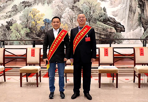 ▲胡国安董事长与湖南省委统战部副部长、省工商联党组书记陈潇