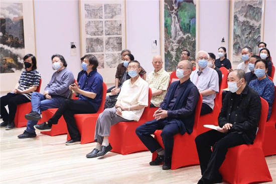 文化和旅游部艺术司副司长何亚文,中国国家画院院长卢禹舜,文化和旅游部全国画院中青年创作骨干研修班执行导师代表赵奇,中国国家画院高研班导师代表高卉民、范扬,全国画院中青年创作骨干研修班学员代表李恩成,中国国家画院高研班学员代表、卢禹舜导师工作室学员徐桑妮先后致辞。中国国家画院党委副书记、纪委书记王青云宣读“中国国家画院教学工作突出贡献”导师名单。开学典礼由中国国家画院副院长徐涟主持。中国国家画院副院长谢小凡,中国国家画院原副院长赵卫、曾来德、纪连彬,中国国家画院美术馆原馆长何加林,中国女画家协会会长孔紫,优秀导师、老艺术家代表詹庚西,哈尔滨师范大学国际美术学院院长李岗,中国国家画院教学培训部主任邱雷、中国国家画院相关部门负责人以及文化和旅游部全国画院中青年创作骨干研修班学员等100余人出席了开学典礼暨“见贤思齐·教学观摩展”开幕式,另还有200多位访问学者、高研班学员同时在线上观看了开学典礼。
