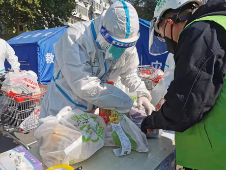 图为丰台区新时代文明实践志愿者参与疫情防控。
