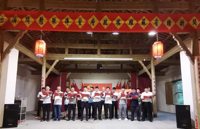 在红军大礼堂,全体党员及入党积极分子在支部书记饶长青同志的带领下,面对鲜红的党旗,举起右手,紧握拳头,掷地有声地重温了入党誓词,自觉肩负起不忘初心、牢记使命的时代重任。