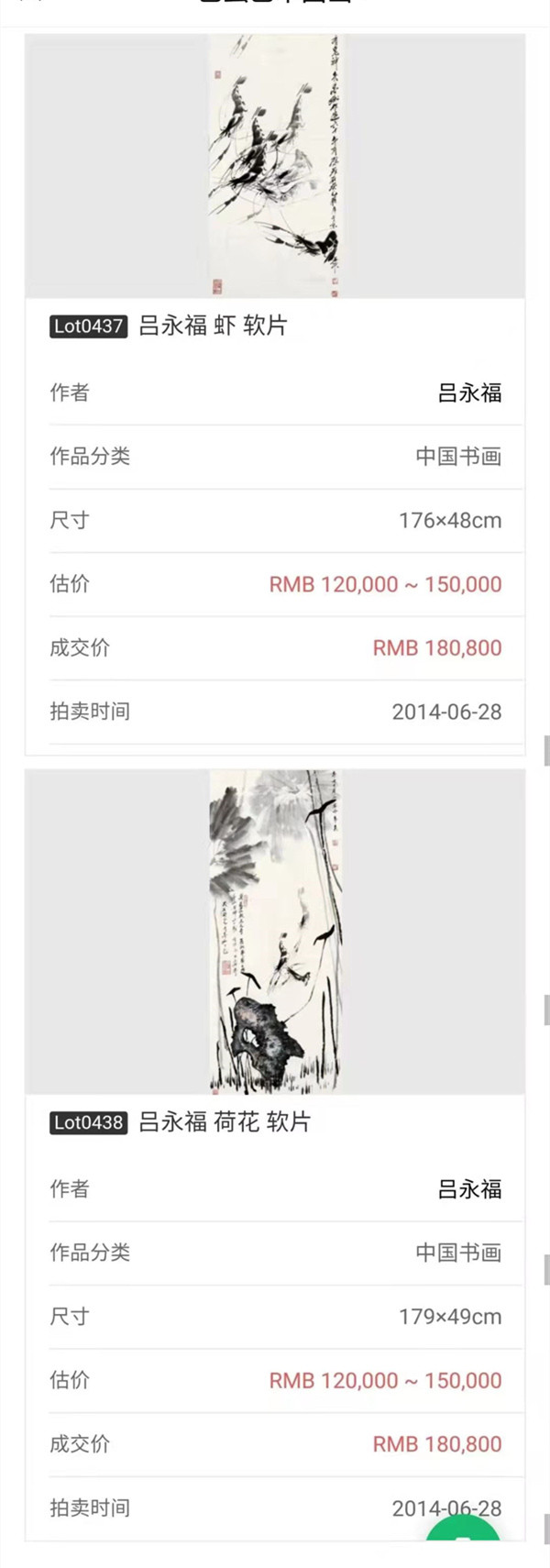 更有甚者,鉴赏大师史树青也亲自为他的《百虾图》题写“墨痴大师百虾图”之字,并又分别为他的两幅画作了题款:“墨痴先生写虾大有白石老人韵致,用墨深浅可分五色,白石不能为也”;“墨痴先生精于大幅,白石老人无此翰墨……”如此赞赏之词实在难以复加。