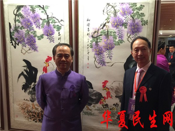 王世军老师和泰中青年联合会会长李桂雄在展览现场