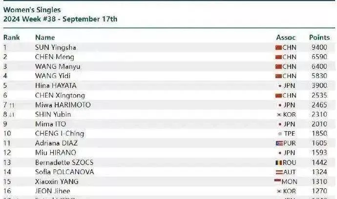 在她之前,女队只有两个人获此殊荣,分别是大魔王张怡宁和邓亚萍。