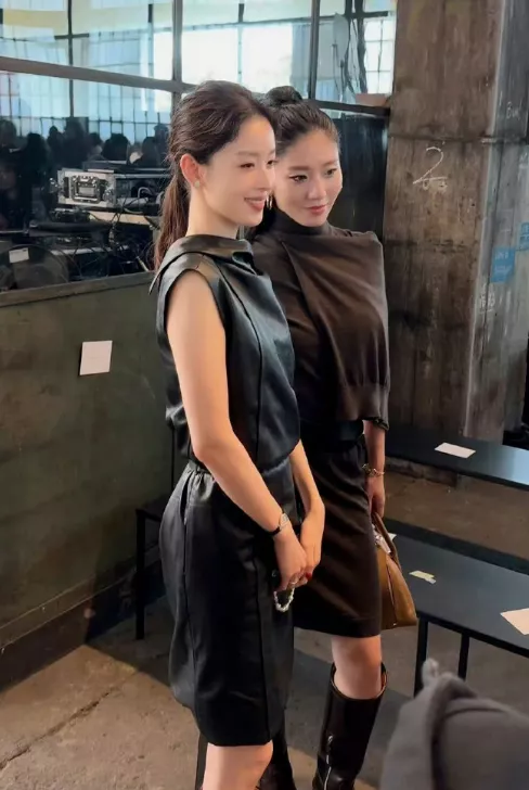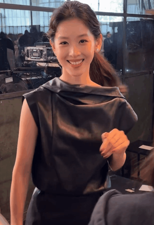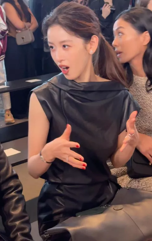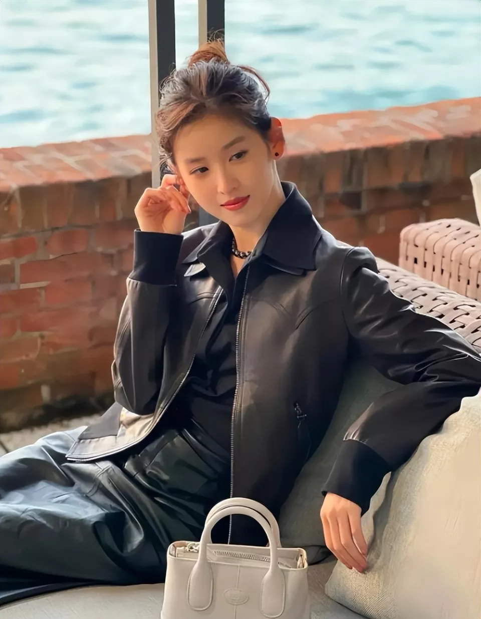 但这次她选择了一件高级的黑色皮裙,将头发扎成低马尾的发型,不笑的时候整个人就是高冷御姐范儿,笑起来的时候又多了些随性洒脱的状态,真是又美又飒啊!