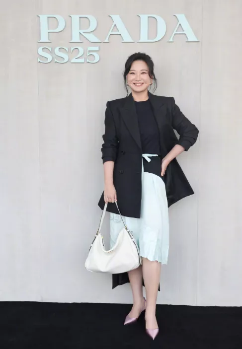 而瘦下来的贾玲也是时尚资源飞升,在Prada秀场上身穿经典西装搭配浅蓝色印花长裙,源自于骨子里的自信与松弛感极具魅力,早就让人刮目相看了。