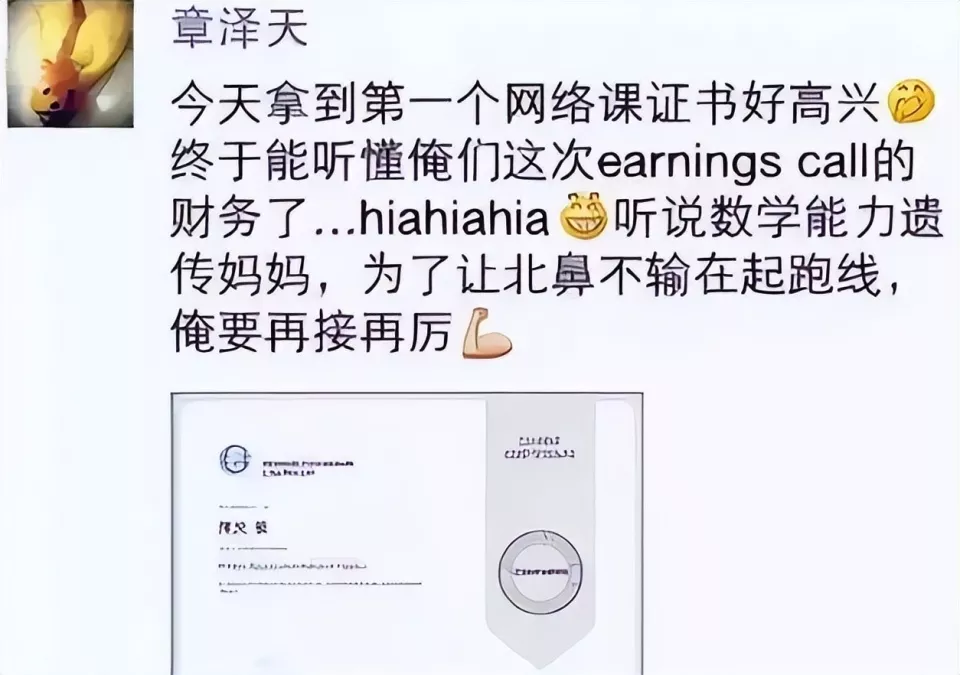 十几岁的章泽天已经清楚知道什么才是最重要的,比起娱乐圈的繁华和浮躁,她更懂得追求知识和学历的重要性。