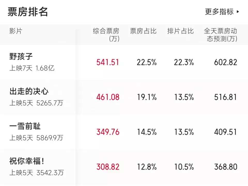中秋档最受关注的影片有《野孩子》《出走的决心》《一雪前耻》《祝你幸福!》这四部,清一色的国产电影!
