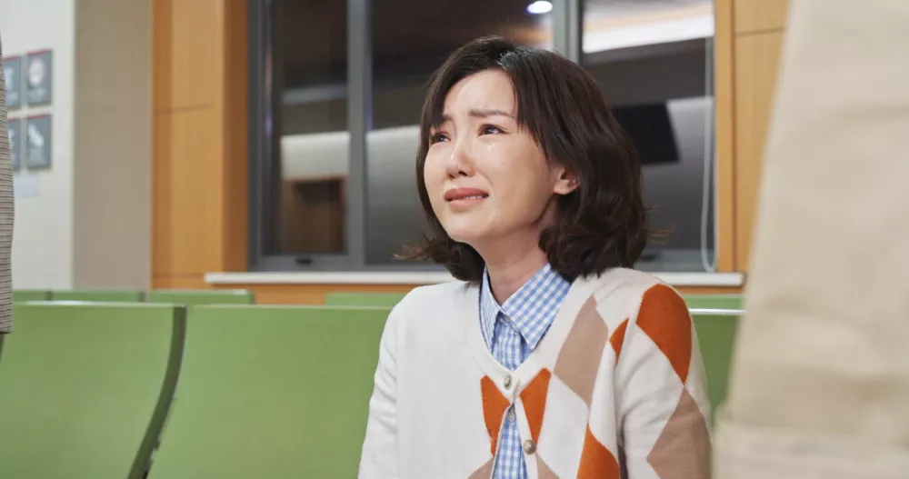 后来为了谄媚韩国老板,穿上透视渔网衣服,打扮得溜光水滑,让人作呕,但转身抹泪的一个瞬间,又让人动了恻隐之心。