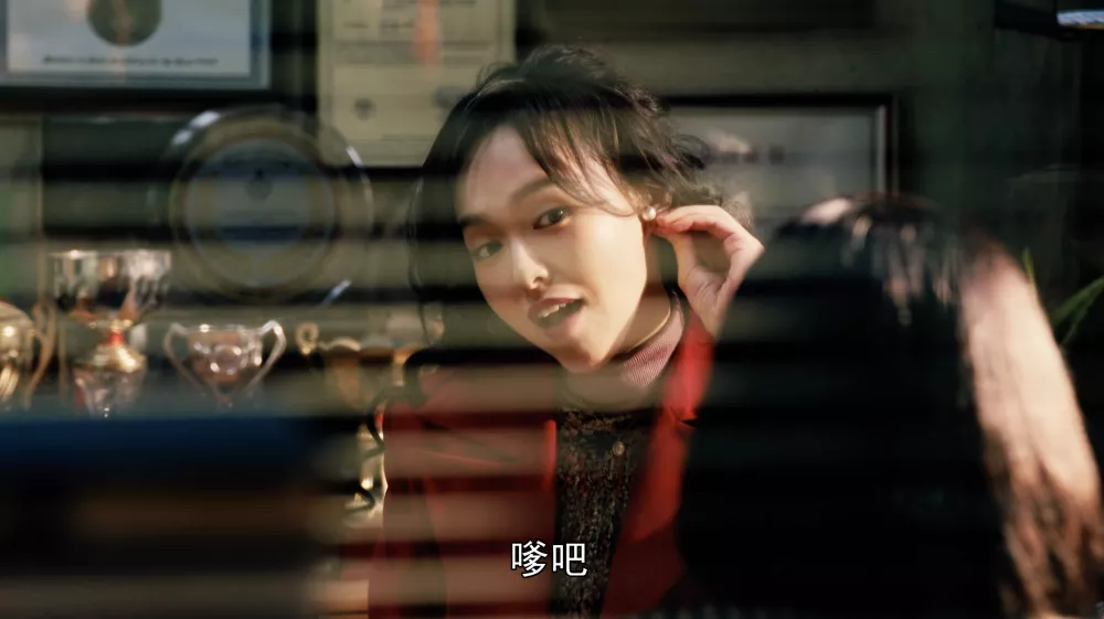 全剧她的镜头经常是背影回头侧身,角度不是仰视就是俯看,充满了一种剑拔弩张的紧张感。