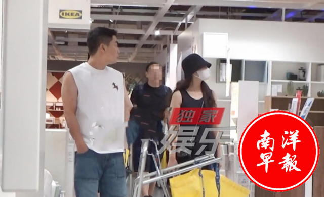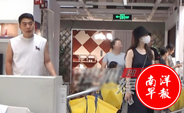 而她的男友,则是一身便装,推着购物车默默跟在她身后,两人之间的默契和亲密感溢于言表。