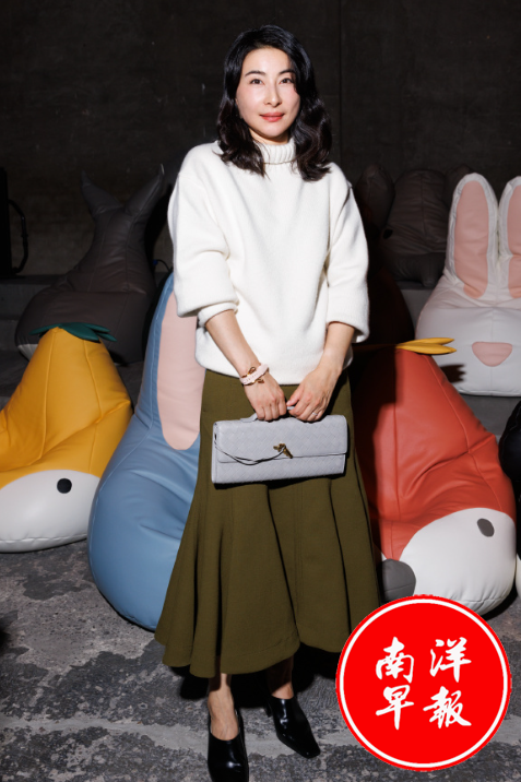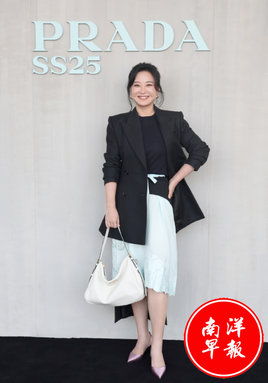 在内场看秀,舒淇脱掉了外套,露出线条轮廓流畅的直角肩,与包包相呼应的雾面高跟让一整身造型显得没有那么枯燥。