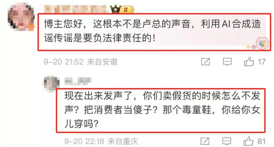 同样,在后续一段炸裂录音中,诬陷三只羊合伙人卢文庆和主播七老板发生了不正当关系,大杨嫂立刻奔走相告帮忙辟谣。从两位嫂子的反应来看,说明她们不是没有在关注后续的舆情动向,但除了维护卓仕琳和七老板之外,针对网上铺天盖地对于产品质量以及是否造假的质疑,大家集体闭麦,实在是让人浮想联翩。