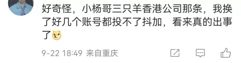 尤其是在小杨哥官宣三只羊香港分公司开业的这一条视频中,有网友换了好几个账号试着帮上热门,可被平台直接禁止,显示当前内容暂不适合加热,这很难不被人猜测是官方立案调查之后平台的又一个动作。
