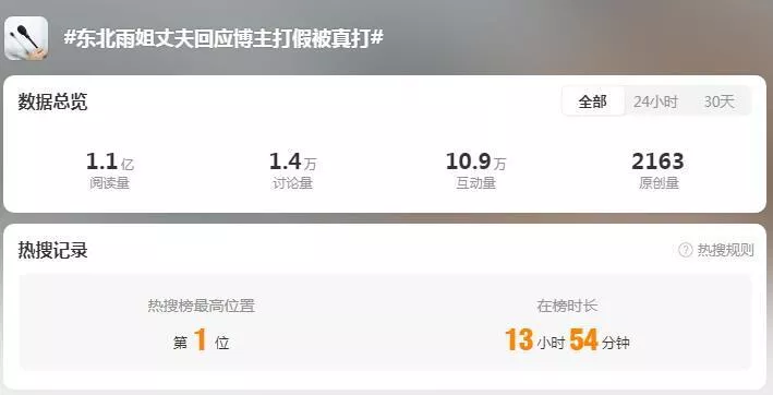 东北雨姐丈夫回应博主打假被真打消息,冲上热搜榜第一位。