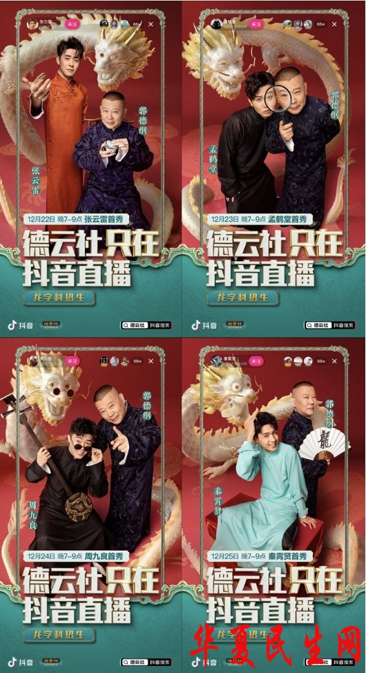 12月21日晚7点,灯起,张九南定场诗音落,德云社龙字科招生首场直播正式拉开序幕,郭德纲、于谦和云鹤九霄等十余位演员登台亮相,在郭德纲抖音直播间上演一场前所未有的直播大秀。