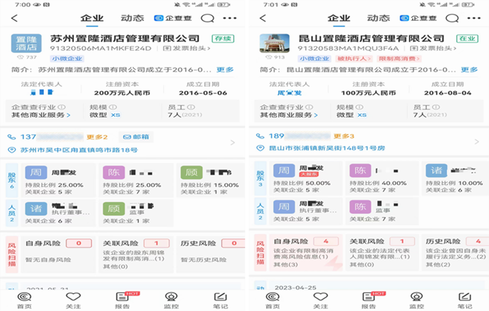 (图一:显示为工商注册周某发代法人代持股部分酒店)