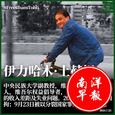 (维权网信息中心报道)2024年9月23日,本网获悉:十年前的9月23日,维吾尔族学者伊力哈木·土赫提被中共当局以分裂国家罪判处无期徒刑;他于2014年1月15日被捕,至今已被监禁超过10年8个月。伊力哈木·土赫提先生倡导民族间的理解与对话,却被中共当局以分裂国家罪被判处无期徒刑。