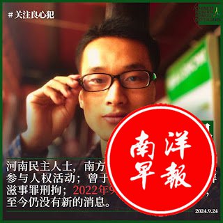 (维权网信息中心报道)2024年9月26日,本网获悉:自2022年9月24日起南方街头运动人士、河南籍民主人士贾榀遭强迫失踪,至今已经超过2年了。