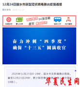 丽水发布截图 中国网12月24日讯 据丽水市人民政府办公室官方微信公众号“丽水发布”今日通报,2020年12月23日0-24时,丽水市无新增确诊病例。截至12月23日24时,累计报告确诊病例35例...