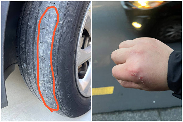 人权活动人士邢鉴近日告诉大纪元记者,上周五(6月21日),他上班到达工作场地后,因为轮胎网磨平了考虑换轮胎,去检查轮胎时,发现轮胎上有一道长长的印子。