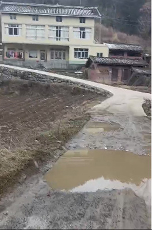当时我在外地打工,他们修到那三叉路口,就不修这边,我父亲就没有叫他们修了。当时乡村干部都来的,派出所也有人来,他们不修这边,所以就有十几米没有修通。为了此事,我多次给市里打热线电话,他们推到乡里,乡干部也来给我们说过,要等有项目就来给我们修。我就问国家政策一样不,其它村全都能通,我们就不能通,他说慢慢来。之后,我又给省里也打过热线电话,他们也推给乡里,过了这几年也没有人问,所以中间十几米都没有修。