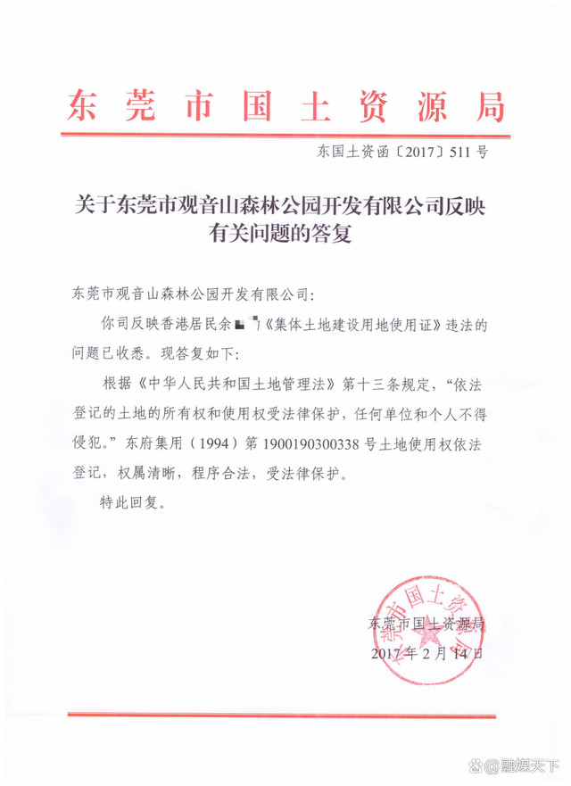 东莞市国土局2017年的答复