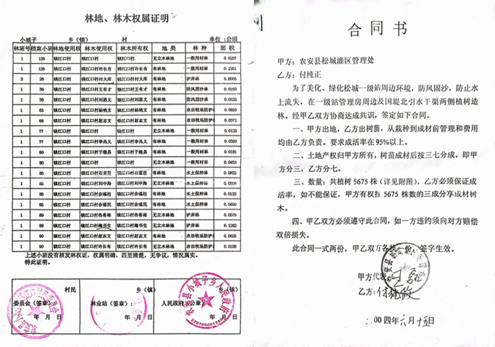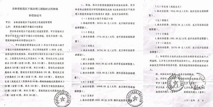村民们还向媒体反映:小城子乡原党委书记刘某多年以来一直承诺给我们发放这笔钱,后来4158号执行裁定书做出后,他又拿这个裁定说事,还说我们的林地没有合法手续,所以不给我们安置补偿款,但是付纯政与农安县松城灌区管理处鉴定了合同书,却也没有给。村民们还给媒体提供了加盖了小城子乡政府、农安县林业局和镇江口村委会公章的《林地、林区权属证明》,上面清晰的证明了村民们林地的合法性。村民们说:2015年签订补偿协议后,2016年就开始动工了,有几户村民因为补偿款没到位阻挡施工,乡里马上就给了,甚至有的什么手续都没有也给了,而那些老实巴交听话的,至今也没有给。