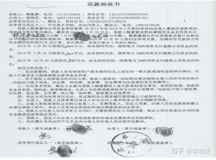 二是谁利用手中司法的公权力让曹丽芬诈骗目的得以实现?2019年7月5日,曹丽芬持有在担保人二处盖有河北美术学院印章字样的《还款协议书》及《借条》(法院判决书未认定借条效力),向石家庄市中级人民法院提起了民事诉讼,要求河北美术学院承担甄紫蒙向其借款4320万元本息的连带保证责任。
