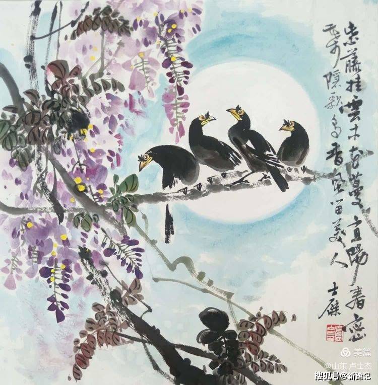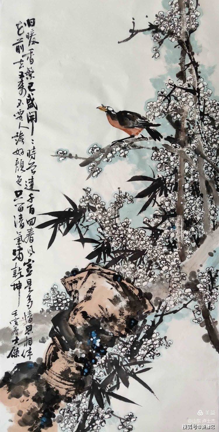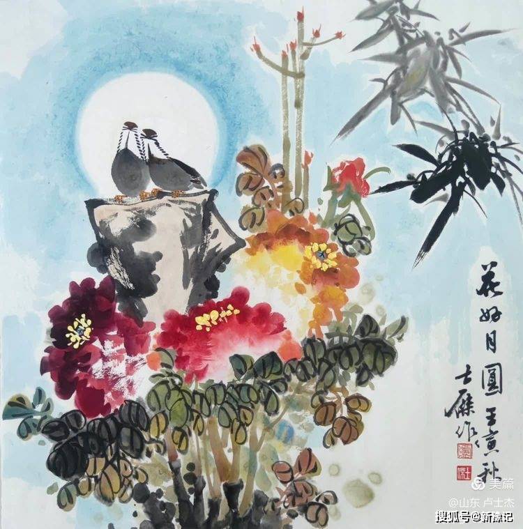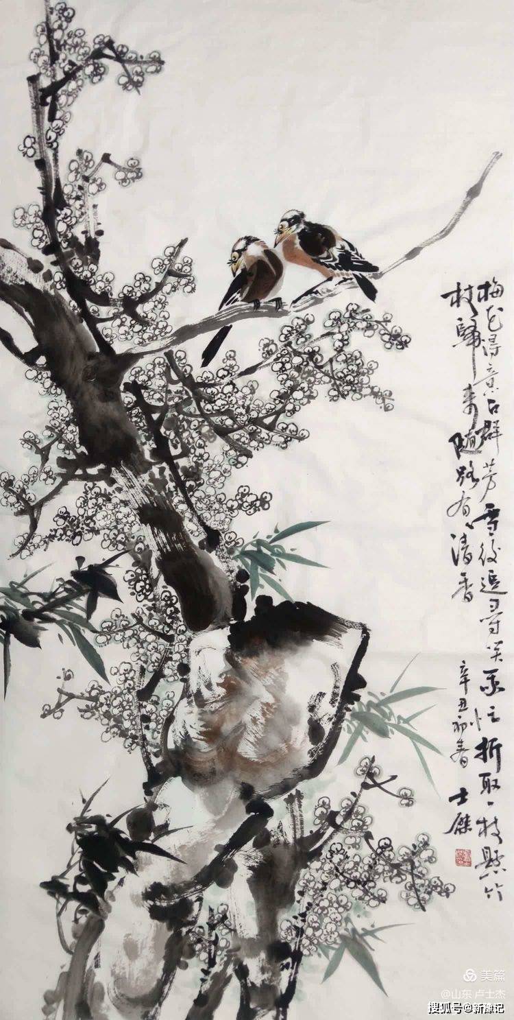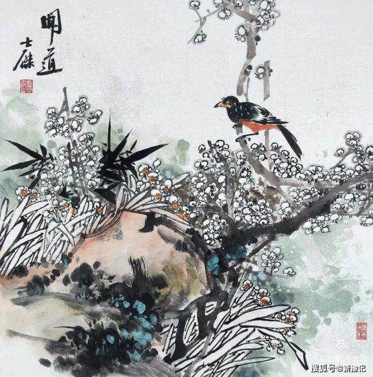 卢士杰的作品以花鸟为主题,但是在他的画作中,花鸟并不仅仅是一种题材,更是一种情感和思想的表达。他的花鸟画作充满了生命力和活力,让人们在欣赏画作的同时,也感受到了生命的韵律和美好。他的画作中的花鸟,不仅有着传统花鸟画的特点,更有着现代艺术的元素,让画作更富有时代感和现代感。他的画作还富有东方哲学和文化的内涵,让人们在欣赏画作的同时,也能感受到深刻的思想和智慧。