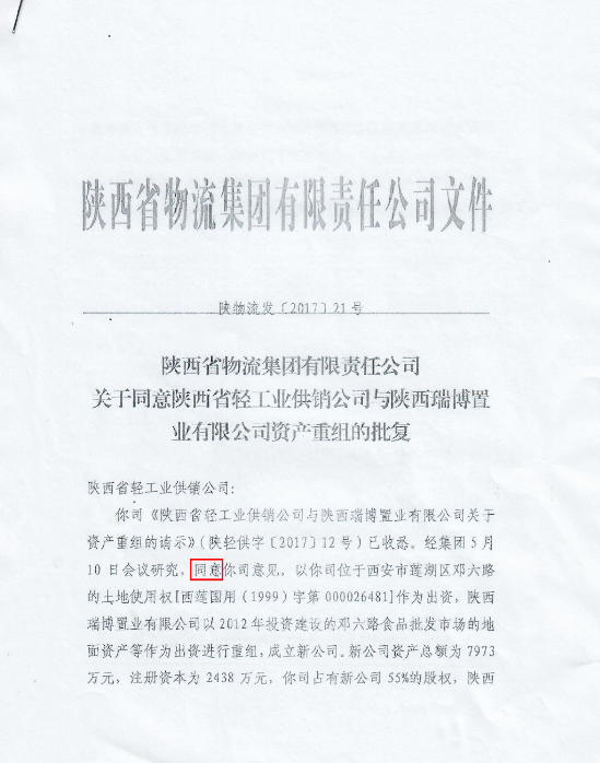 轻工公司的上级陕西省物流集团有限责任公司均批复:同意。