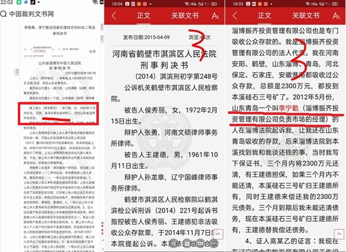 李宁勤常年居住在淄博,她虽常年不上班,但青岛日报社的工资和福利待遇及各种补贴样样都享受。李宁勤作为一名国家干部、共产党员,不但能吃空饷,还能不断变换多种身份在外撒谎行骗:有时自称是青岛日报社退休职工(判决书为证),有时又宣称自己是淄博日报社职工(有案宗为证,张检一部刑诉2021,186号);她还在外有多个兼职,如:担任淄博振齐投资管理有限公司市场部经理(有判决书为证,2014淇滨刑初字第248号);她还在外注册经营多家公司,如:本溪天富碎石加工有限公司(持股比例25%),青岛金鹈鹕商贸有限公司,菏泽市牡丹区创新能源有限公司(企查查并附截屏)。