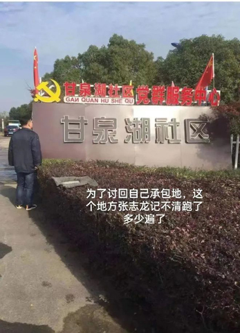 为了拿回自己300亩承包地奔波多年张志龙异常愤怒悲伤的说:我的300亩承包地被他们非法强占,我维权多年无果,南京市江宁区横溪街道和甘泉湖社区的干部无视我反映的问题,将我的问题当皮球踢,这样的干部真让百姓寒心。