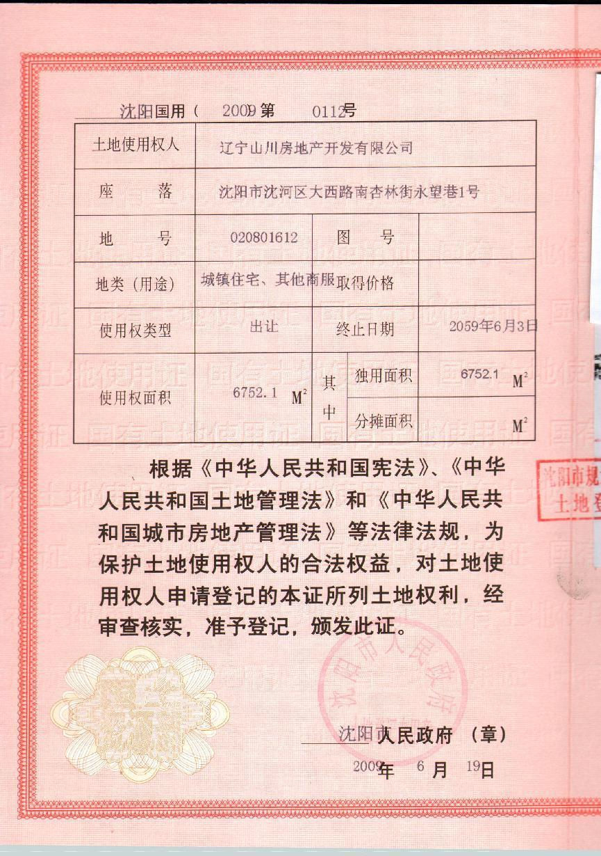 在山川公司如约履行、支付完毕全部投资款项、准备办理土地权属登记时,突然得知沈阳市皮鞋三厂和其权属人沈河区企业管理局为提升土地价值、破解资不抵债的囧况,动用行政手段恶意隐瞒土地被工商银行贷款抵押、形成不良贷款被法院查封这一事实,迫于无奈山川公司只能在改制协议之外又承担了3000多万的额外费用,由此山川公司耗费近三年时间、偿还全部贷款后才解套土地,于2007年9月5日经沈阳市土地储备交易中心特批毛地摘牌,获得沈阳市皮鞋三厂原厂区的土地权属。